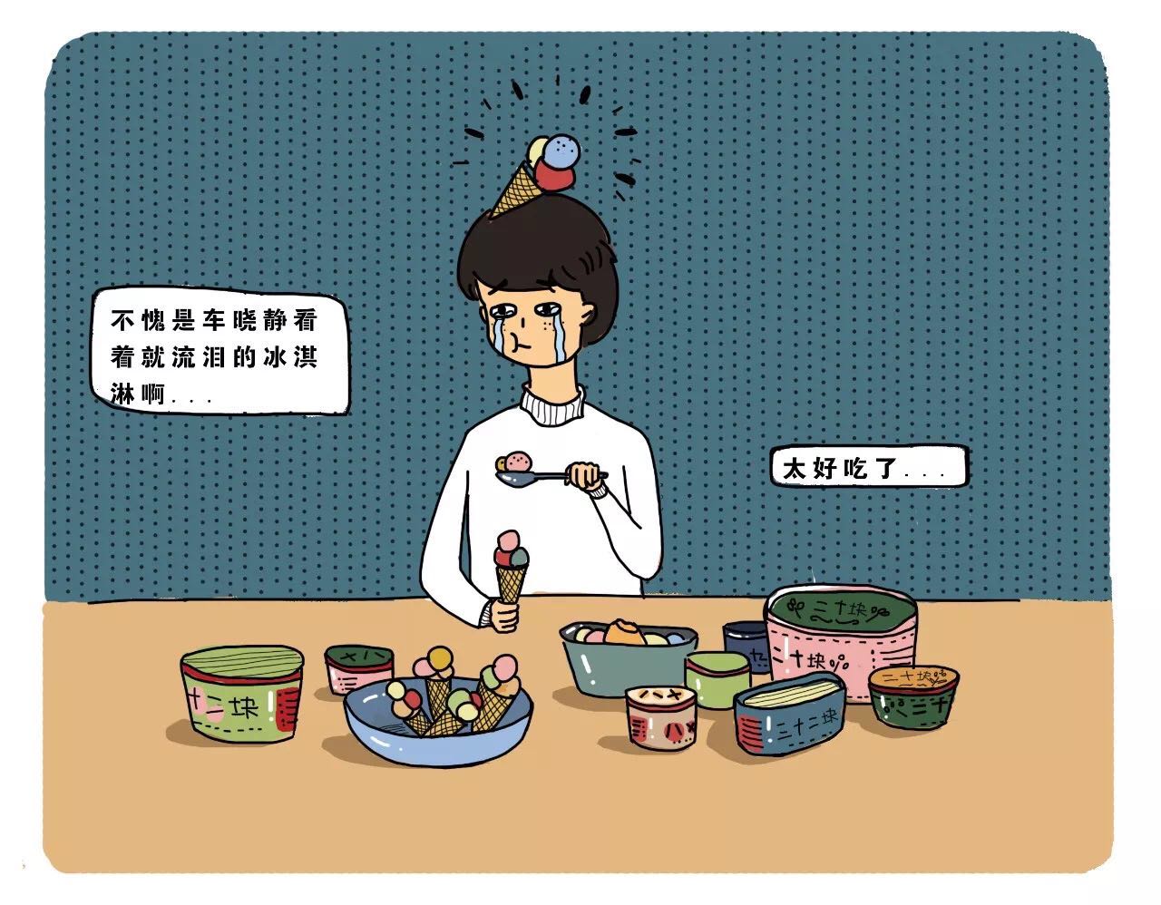 那天晚上,宋一平一个人坐在沙发上,边吃边感叹:“不愧是车晓静看着就想流泪的冰淇淋啊,太好吃了。”
